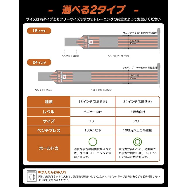 【 全てのトレーニーに満足して頂けるように2サイズを用意】 【18インチ・46cm】【24インチ・61cm】丸洗いも出来ます!強化マジックテープを使用しているのでトレーニング中に外れることもなく、しっかり固定できます。