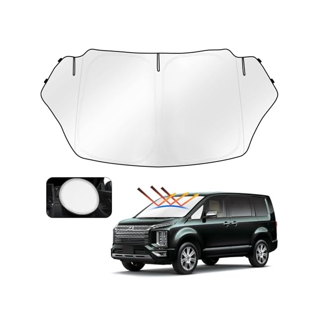 Cartist 三菱 デリカ D5 フロントサンシェード Delica D5 CV1W~CV5W型 2019年~現行 サンライン サンセット サンフィア フロントガラス サンシェード シェードカーテン マルチサンシェード 遮光 シェード 日よけ 車種専用 UVカット 車中泊 カスタムパーツ インテリア 内装パーツ 取付簡単 収納袋付