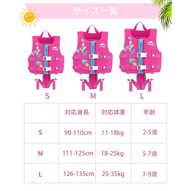 【適切なサイズ】男の子、女の子に問わず、11KGから35KGまでも対応可能なフローティングベスト。鮮やかな色で、すぐにお子様の居場所をチェックできます。