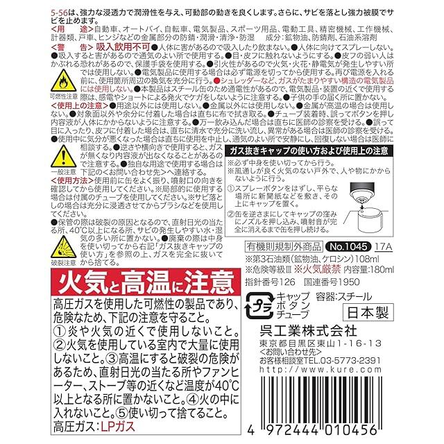 KURE(呉工業) 5-56 180ml 防錆・潤滑剤 1045
