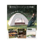 【虫除けモスキートネット&便利な内部設計】テントフロント対面2ヶ所のシート扉のインナーはメッシュシート仕様。視界と通気性の確保と害虫除けの網目が細かいモスキートシート。テント上部は内部の熱気を排出するベンチレーション(通気)スペースがあり、その上部にはトップシートで覆われて雨漏れを防ぎ、換気を促す構造です。フロント、メッシュシートはダブルファスナー仕様で内外両側からできて便利です。巻き止めできるタッセルで固定ができます。テントの上部にはランプを吊るすためのフックがあり、夜間の明かり確保に役立ちます。野外での生活をより快適にし、充実したアウトドア体験をサポートします。全ての機能を考慮した使い勝手の良いデザインです。