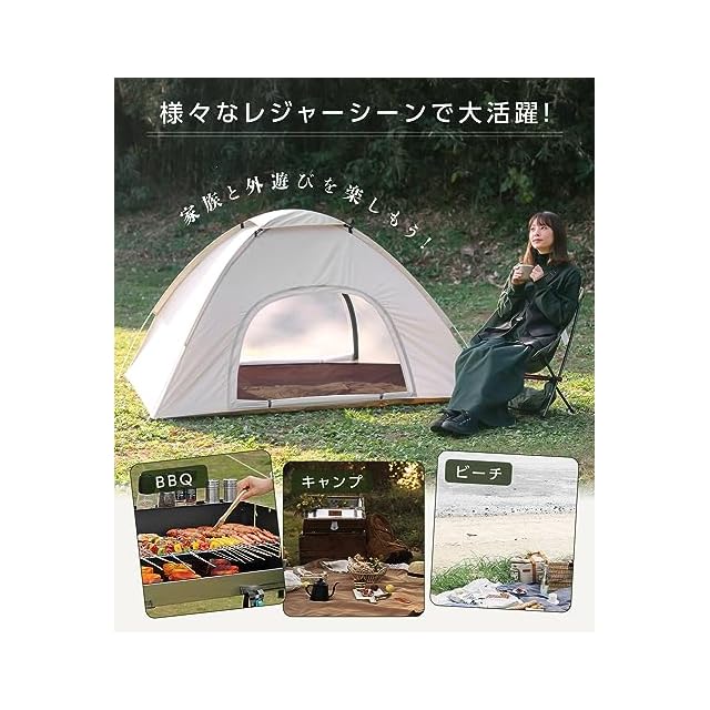 【ホップアップ式&簡単設営】この1~2人用のテントは、持ち運びに便利なコンパクトなサイズで、アウトドアやキャンプに最適なアイテムです。設営も非常に簡単で、初心者の方でも迷うことなく、たった数分で準備ができます。収納キャリーバッグから取り出すとワンタッチで広がるホップアップ式。わずか約30秒で完成します。就寝2人用でも200㎝のワイド設計。フロントシートを広げれば、さらにゆったりの解放感、くつろぎを楽しめます。開閉用のフロントシート(扉)をファスナーで密閉すればフルクローズ仕様になり、着替えなどのプライバシー保護が図れて便利で、しかも安心です。