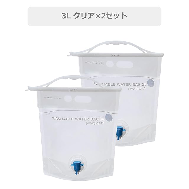 岩谷マテリアル(Iwatani Materials) 水タンク ウォッシャブルウォーターバッグ 3L 2個セット クリア WWB-3CL 注ぎやすいコック付き キャンプ レジャー 防災 約33×29×14cm