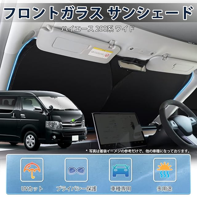 商品名:LIMSTYLE トヨタ ハイエース 200系 ワイド フロントガラス用 サンシェード HIACE 200 マルチサンシェード 遮光 断熱 シェード カーテン H16.8~現行 日除け UVカット 車中泊 しなやか スポーティ タイプ ドット柄 収納袋付 アクセサリー 内装パーツ 車種専用 取付簡単 メーカー直営