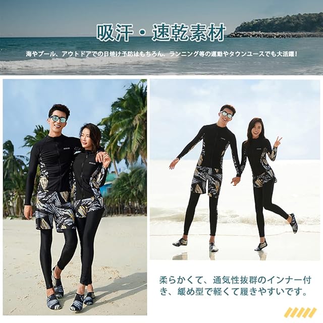 【適用場合&水陸両用】吸汗・速乾素材なので運動におすすめ!スポーツやフィットネスに、サイクリング、スイミング、サーフィン、ダイビング、海水浴、プール、ビーチ、温泉と幅広いジャンルで使える便利なスポーツ・アイテムです。通勤、通学、ランニング、ヨガなど、スポーツウェアとしてもご利用いただけます。水に濡れても快適に活動できる生地を使用。