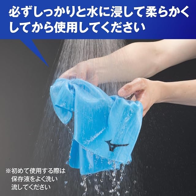 はじめて使用する際は、タオルに浸している保存液をよく洗い流して、よく絞ってください。