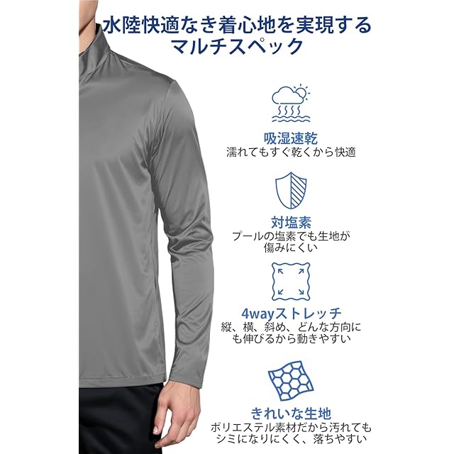 【優れた生地】85%ポリエステル、15%ポリウレタン水着素材で、紫外線対策、伸縮性、接触冷感、水陸両用です。ラッシュガード メンズ は様々なシーンで大活躍で、ランニング、サイクリング、海・プール、アウトドアなどシンプルカラーで着こなしやすさ抜群です。