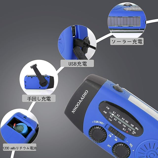 商品名:多機能ラジオ 防災グッズ 高輝度懐中電灯を内蔵した充電式ライト、手回し、ソーラー、USB充電の大容量AM/FMラジオ。SOS警報、防水、2000mAh全スマホ充電iPhone、Android。5つのアンテナ。地震、津波、台風、停電、その他の緊急事態 災害。付属品には、充電ケーブル、ポータブルストラップ、日本のマニュアルが含まれます
