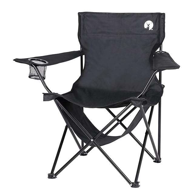 商品名:キャプテンスタッグ(CAPTAIN STAG) アウトドアチェア チェア ラウンジチェア 棚モック付き ドリンクホルダー付き ブラック UC-1827