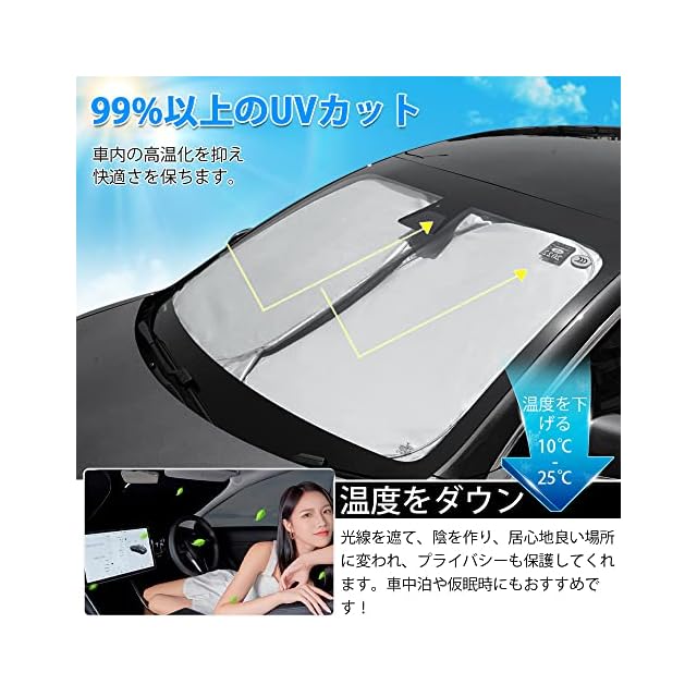 2.【遮光断熱・UVカット】:2層断熱コーティングを採用し、99.5%の紫外線をカット!また、日焼けや熱線により、内装の劣化を防止します。さらに、車内温度が抑えられており、エアコン率が良くなり、車内泊を快適にします。