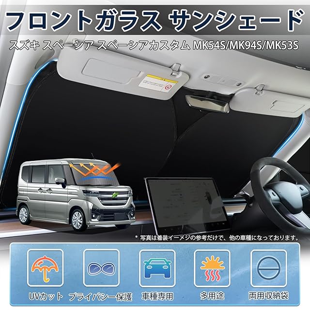 商品名:LIMSTYLE スズキ スペーシア フロントサンシェード スペーシアカスタム スペーシアギア MK54S MK94S MK53S 遮光 断熱 シェード スペーシアベース MK33V ワゴンRスマイル MX81S MX91S 日除け UVカット 暑さ対策 しなやか 車保護 車種専用 カスタムアクセサリー 内装パーツ 収納袋付 取付簡単 メーカー直営