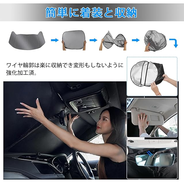 3.【眩しい防止】:表はドット柄をデザインされ、メッシュのようなため、反射が少なく、アルミ遮熱シートの眩しい光線を抑えることができます。他人に迷惑を掛けないし、プライバシーも保護できます。また、スポーティタイプのため、しなやかは特徴!設置簡単だけでなく、収納もスッキリに!より使い勝手になります。
