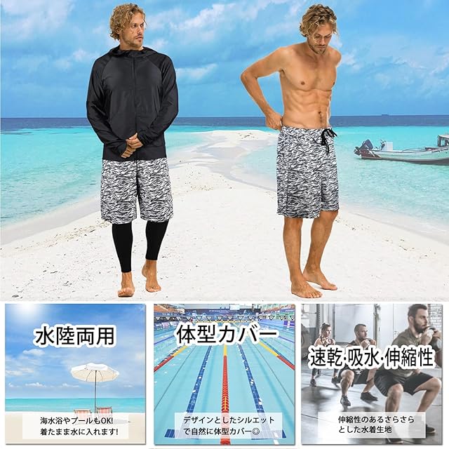 商品名:[ARMOTO] ラッシュガード メンズ 水着 長袖 パーカー レギンス サーフパンツ フィットネス [UVカット UPF50+・吸汗速乾] 水泳 水陸両用 大きいサイズ