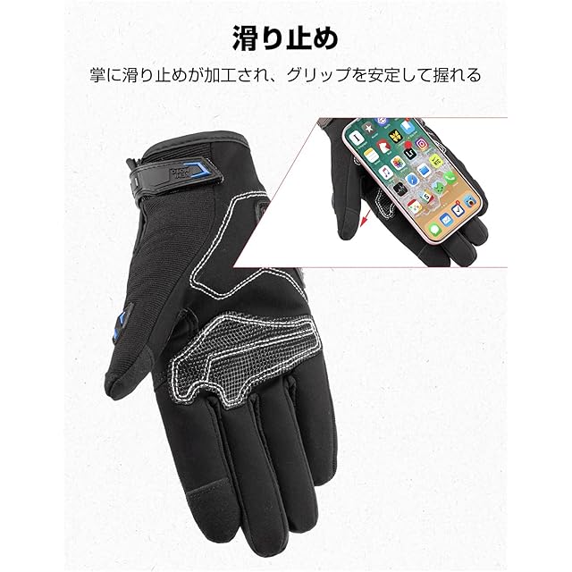 【スマホ反応はバッチリ】人差し指、親指の指先にタッチパネル対応の特殊な素材を採用され、グローブを着用したままスマホやタブレットなどの操作ができます。ツーリングの時、グローブをして、ナビや撮影に高い利便性があり、わざわざ脱着する必要はございません。
