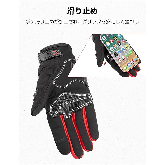 【スマホ反応はバッチリ】人差し指、親指の指先にタッチパネル対応の特殊な素材を採用され、グローブを着用したままスマホやタブレットなどの操作ができます。ツーリングの時、グローブをして、ナビや撮影に高い利便性があり、わざわざ脱着する必要はございません。