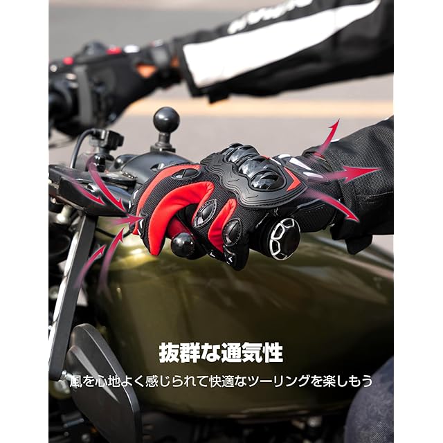 商品名:KEMIMOTO バイク グローブ 夏 メッシュ 通気 バイク用グローブ 軽量 スマホ対応 夏用グローブ オートバイ手袋 滑り止め 耐衝撃 プロテクト 春夏秋 レッド XL 402