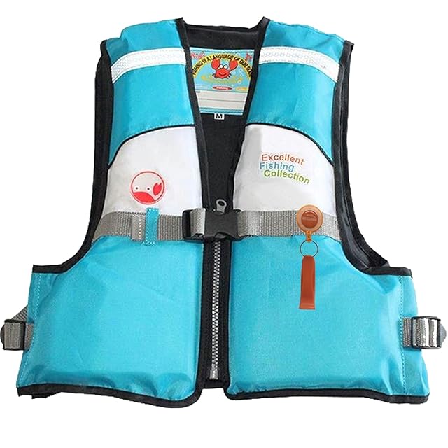 Reedark ライフジャケット 子供用 ジュニアフローティングベスト 呼び子付き フローティングベスト 救命胴衣 防災グッズ 股下ベルト付き 水遊び 海水浴 川遊び 反射帯付き (ブルー、S)