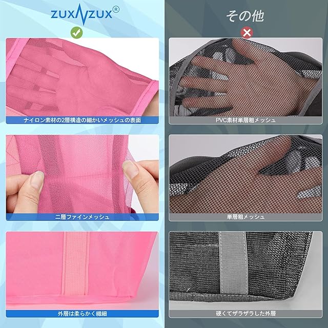 商品名:[ZUXNZUX] ビーチバッグ プールバッグ 軽量 38L 大容量 速乾 自立式 折り畳み可能 メッシュバッグ ビーチ/ショッピング/水泳/ジム/スパ/温泉/旅行用 バッグ (ピンク)
