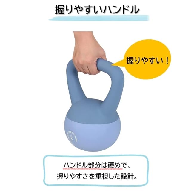 ・【やわらかい素材のケトルベル】ケトルベル魂ブランドの「やわらかい素材」のケトルベル。 衝撃を吸収する「やわらかい素材」のため、体にぶつけた際の衝撃も大幅に軽減されます。・【幅広いハンドル窓】ハンドル部分はワイドで硬めの素材のため、両手でもしっかり握ることが出来、ハンドルから手が離れるリスクも軽減されます。・【ご家庭での利用に最適】表面の素材はPVC、球体内部は砂鉄・砂のため、床や壁への衝撃も大幅に緩和。ご家庭内でも安心してトレーニング頂けます。・【重量バリエーション】★2kg 4kg 6kg 8kg 10kg 12kg 16kgを取り揃えています。★モニターの発色の具合によって実際のものと色が異なる場合がございます。製造ロットにより、商品本体の色あいが異なる場合がありますこと、予めご了承の程よろしくお願いいたします。・★ケトルベルの重量ごとに砂の量と空洞部分の割合が異なりますため、重量によっては砂の揺れ(砂の音)を大きく感じる事が有ります事、予めご了承の程お願いいたします。★日光により、色あせが生じることがありますのでご注意下さい。ゴムとの接触により、変色することがありますのでご注意下さい。