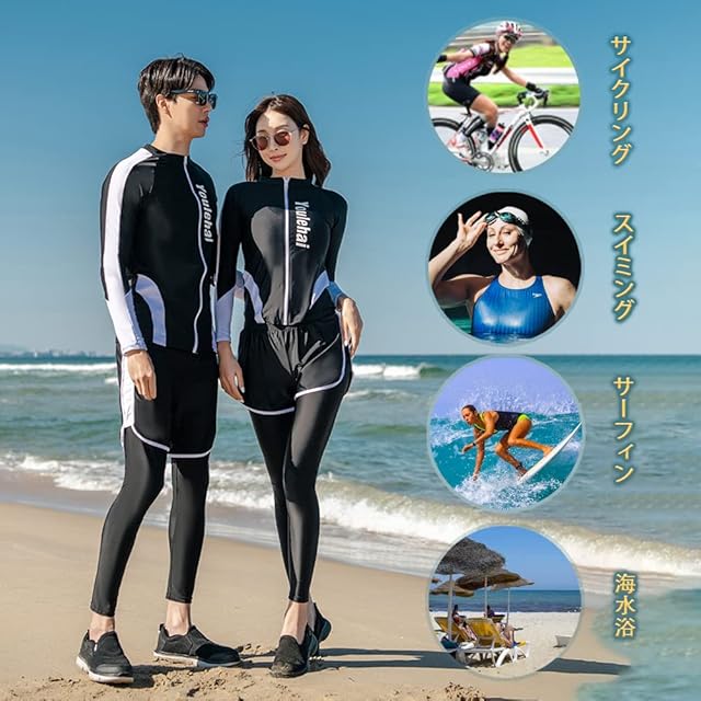 【適用場合&水陸両用】海辺のみならず、軽量なのに伸縮性抜群の生地でとても動きやすく、吸汗・速乾素材なので運動に最適です!夏場のウォータースポーツや野外活動の際、海、ジム、プールやビーチ、、温泉と幅広いジャンルで使える便利なスポーツ・アイテムです。通勤、通学、ランニング、ヨガなど、スポーツウェアとしてもご利用いただけます。水に濡れても快適に活動できる生地を使用。前開き対応のラッシュガードは着脱も簡単です、着替えに便利。