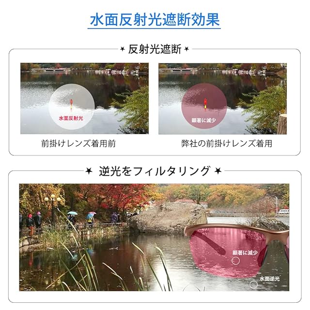 ✅➤【非球面レンズ】乱反射をカットし、フィッシングの現場で水面の反射光と逆光を遮断、曇り/夜間に明るく鮮明にする