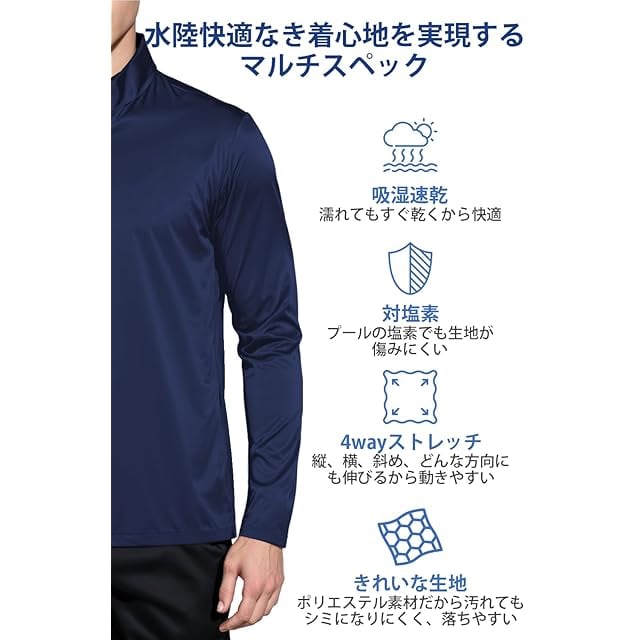 【優れた生地】85%ポリエステル、15%ポリウレタン水着素材で、紫外線対策、伸縮性、接触冷感、水陸両用です。ラッシュガード メンズ は様々なシーンで大活躍で、ランニング、サイクリング、海・プール、アウトドアなどシンプルカラーで着こなしやすさ抜群です。
