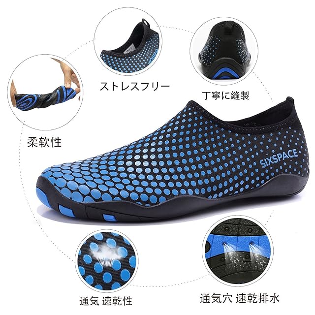 商品名:Sixspace マリンシューズ ウォーターシューズ 水陸両用 アクアシューズ シュノーケリング ビーチシューズ 軽量 通気 ヨガ サーフィン 男女兼用 青 28cm