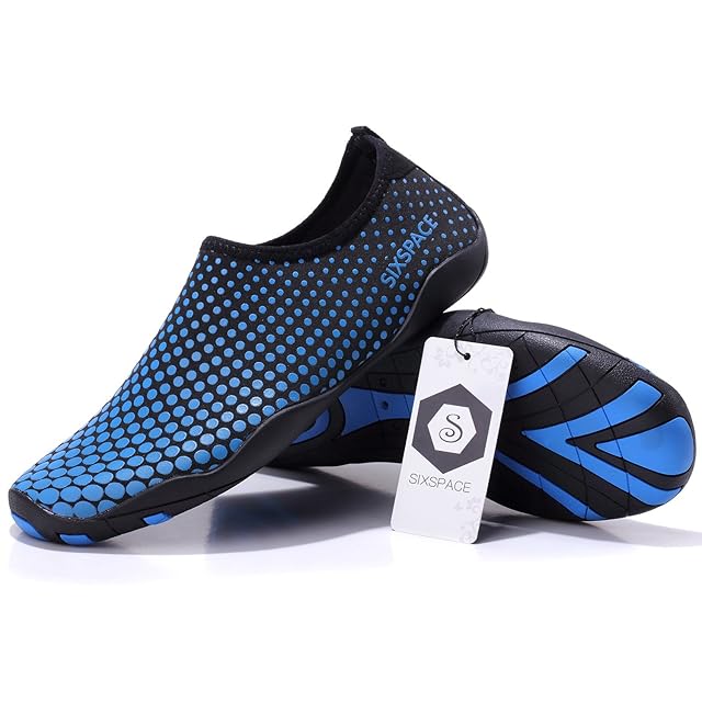 Sixspace マリンシューズ ウォーターシューズ 水陸両用 アクアシューズ シュノーケリング ビーチシューズ 軽量 通気 ヨガ サーフィン 男女兼用 青 28cm