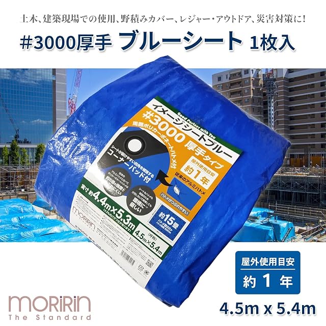 モリリン ブルーシート レジャーシート イメージシートブルー #3000 厚手 4.5×5.4m ポリカーボネートハトメ 使用目安約1年 1枚入