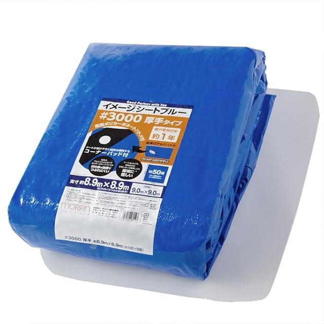 モリリン ブルーシート レジャーシート イメージシートブルー #3000 厚手 9.0×9.0m ポリカーボネートハトメ 使用目安約1年 1枚入