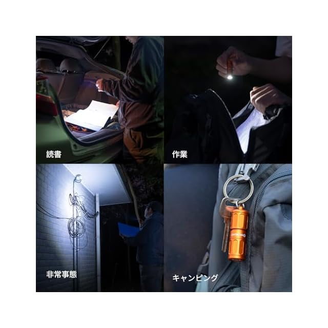I1R 2 PRO キーホルダーライトは軽量でコンパクトに仕上がり、ポケットやバックに入れて携帯しやすいです。懐中電灯のヘッド部を回すだけで2段階の輝度を簡単に切り替え、夜間作業、整備、点検、防災、キャンプ、夜釣り、山登り、散歩、緊急時など様々なシーンでご活用頂けます。付属のType-Cケーブルを使って簡単に充電でき、環境に優しいながら利便性も高いです。また、フル充電までは約100分間がかかり、満充電の場合に最大12時間の連続使用が可能で、いきなりバッテリー切れの心配はなく、心置きなくお使いいただけます。