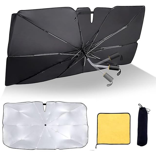 商品名:【2023 傘柄が曲がる】 CHICHL 車用サンシェード サンシェード 車 フロント 傘型サンシェード 中大型SUV MPV適用 軽自動車 車種汎用 フロントガラス用 遮光 遮熱 紫外線対策 暑さ対策 車中泊 日よけ 日除け 取付簡単 折り畳み式 収納袋付 ルームミラー位置開け式 車用品 (L約138*80cm)