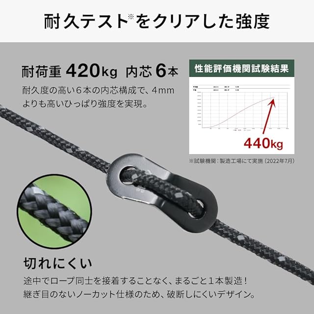 ✨【優れた引張り強度】継ぎ目のないノーカット製造で3mmは240kg、4mmは350㎏、5mmは420㎏の高耐荷重