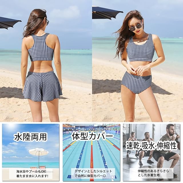 [特徴] 水陸両用 吸汗速乾 接触冷感 UPF50+ 体型カバー 4WAYストレッチ ゆったりデザイン。