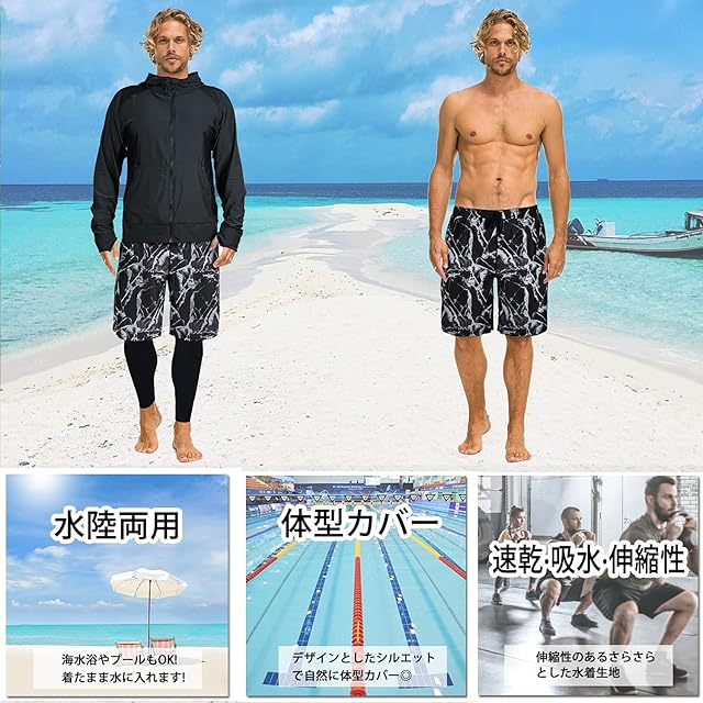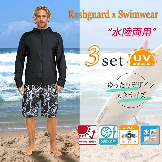商品名:【ARMOTO】 ラッシュガード メンズ 水着 長袖 パーカー レギンス サーフパンツ フィットネス [UVカット UPF50+・吸汗速乾] 水泳 水陸両用 大きいサイズ