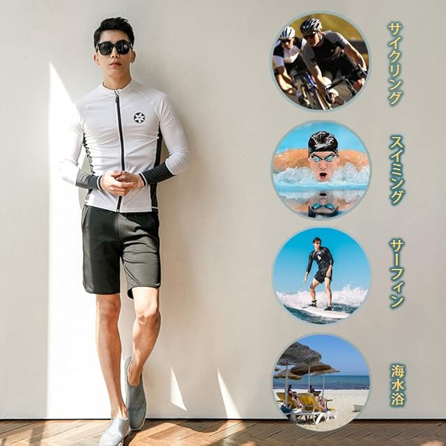 【適用場合&水陸両用】吸汗・速乾素材なので運動におすすめ!スポーツやフィットネスに、サイクリング、スイミング、サーフィン、ダイビング、海水浴、プール、ビーチ、温泉と幅広いジャンルで使える便利なスポーツ・アイテムです。通勤、通学、ランニング、ヨガなど、スポーツウェアとしてもご利用いただけます。水に濡れても快適に活動できる生地を使用。