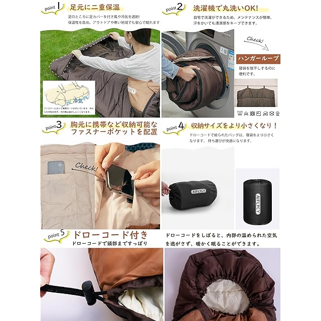【簡単お手入れ&丸洗いOK】ご家庭で洗濯機で丸洗いができるのでいつでも清潔にできます。ご使用の前に、日光に当たっておけば、水分が蒸発され、寝袋がもっと暖かくなります。丸洗い可能なので衛生的です、防災グッズにもオススメです。