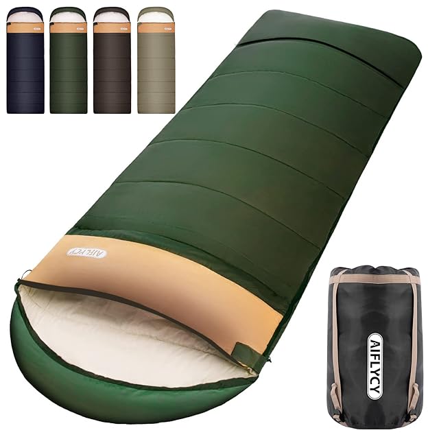 AIFLYCY 寝袋 シュラフ 封筒型 軽量 冬用 夏用【足元に二重保温・230T防水】オールシーズン 1.8Kg 1.0Kg 2.2Kg 1.4Kg コンパクト 快適温度-15℃-25℃ 簡単収納 軽量 中綿 登山 車中泊 防災用 アウトドア キャンプ 丸洗い可能 春夏秋冬の使用可能 収納袋付き