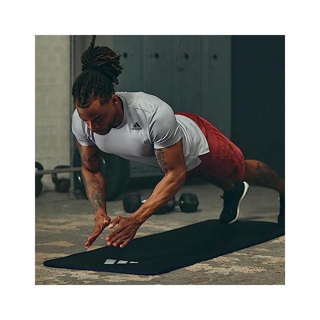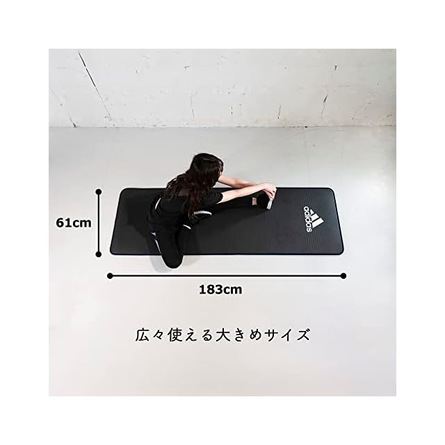 adidas(アディダス) トレーニングマット/ヨガマット 10mm 厚め 幅広 耐久性 滑り止め キャリーストラップ付き ADMT-12235BL ブラック/ブルー