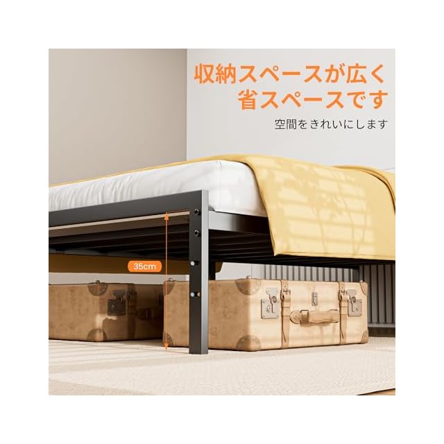 ベッド下収納: このベッドシングルは、下に十分な収納スペースを備えており、洋服や寝具はもちろん、靴や雑貨も楽に収納できます。