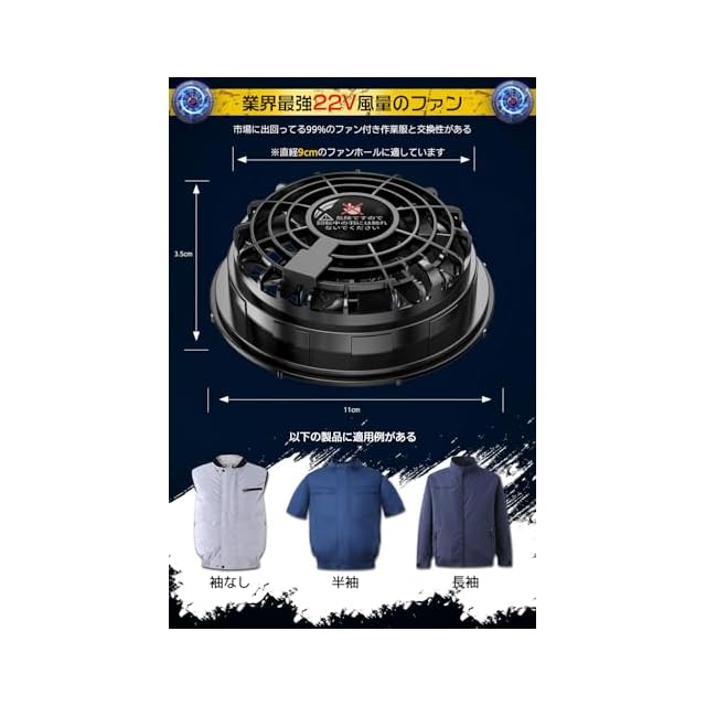 【2025年最新版|驚異の22V超強風!フルセット登場】今年の猛暑対策はこれで決まり!2025年最新モデルは、最大22Vのハイパワー送風で体感温度を一気に下げ、暑さによる作業効率の低下を徹底的に防ぎます。従来品を遥かに超える風量で、ボタンひとつで涼しさを即実感!お手持ちの空調作業服に装着するだけで、真夏の屋外作業も快適に変わります!【圧倒的送風力|進化系ファン搭載】DCブラシレスモーター採用+9枚羽根の空力デザインで、静かさとパワーを両立!フラット設計で邪魔にならず、ヘルメットや工具の干渉も最小限。建設・農業・物流だけでなく、登山・釣り・キャンプなどのアウトドアにも最適な万能ファンです!【30000mAh超大容量|一日中クールダウン】大容量バッテリーで最長36時間稼働!一度の充電で一日中涼しさが続きます。しかもPSE認証取得済で安全性も◎。スマホやタブレットの充電もOKなUSB出力付きで、現場でもレジャーでも大活躍!※使用環境により使用時間が変動あり【驚きの静音性能|集中できる作業空間へ】新型モーターにより、パワフルなのに静か!気になるファンの音を大幅カット。作業や会話の邪魔にならず、集中力を保ったまま快適作業。風量は4段階で調整可能、体調や気温に合わせて最適な涼しさをキープ!【高互換性×幅広い用途|1台でマルチに対応】ファン口径は汎用性の高い9cm設計で、市販のほとんどの空調ウェアに対応。作業着からアウトドアウェア、スポーツウェアまで自在に取り付け可能。建設・倉庫・農業・配達業から、登山・キャンプ・ゴルフ・自転車まで、あらゆる猛暑シーンに大活躍!熱中症対策に今すぐ導入を!