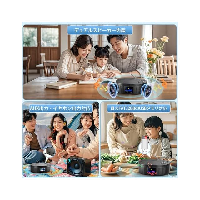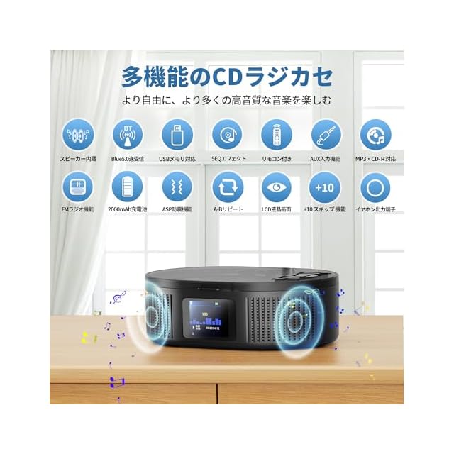 このCDラジカセプレーヤーは、音楽を楽しむための多機能オーディオプレーヤです。CDラジカセプレーヤー、FMラジオ、Bluetoothスピーカーを1台に統合し、様々な音源をお楽しみいただけます。