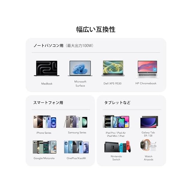 ⚡【ユニバーサル互換性】古いの充電器に別れを告げ、このUSB C充電ステーションは毎日の充電ニーズを満たします。 MacBook Pro MacBook Air MacBook iPhone 16/16 Plus/16 Pro/15 Pro Max iPhone 14/14 PRO/14 PRO MAX/13/ 13 Mini/ 13 Pro/ 13 Pro Max iPhone 12/ 12 Mini/12 Pro/ 12 Pro Max/ XS/ XS Max/ XR/ 13 Google Pixel iPad Pro iPad Mini シリーズ/iPad Air シリーズ AirPods Proと互換性のある 。