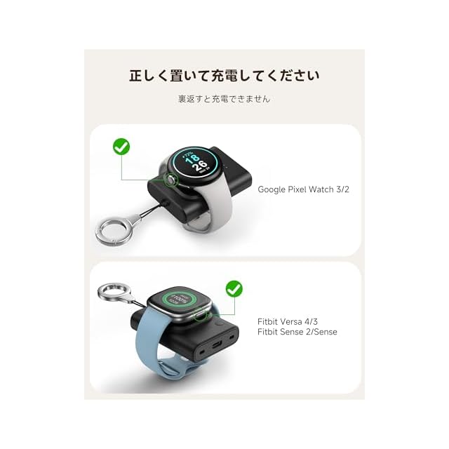 商品名:【Pixel Watch専用 充電器】1800mAh モバイルバッテリ、Pixel Watch 3/2 & Fitbit Versa 4/Versa 3/Sense 2/Sense/Ace LTE対応(Pixel Watch 1非対応)、ピクセルウォッチ 充電器、小型軽量設計 キーホルダー付き、SwanScout 305G2