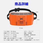 本体サイズ:17.5*5*3cm ベルト長さ:70-145cm 外箱サイズ:19.3*8.5*5.3cm ネットウェート:0.41kg グロスウェート:0.42kg 材質:ABS+TEC冷却プレート+電子 カラー:オレンジ セット内容:本体*1、USBケーブル*1、日本語説明書*1、ボックス*1