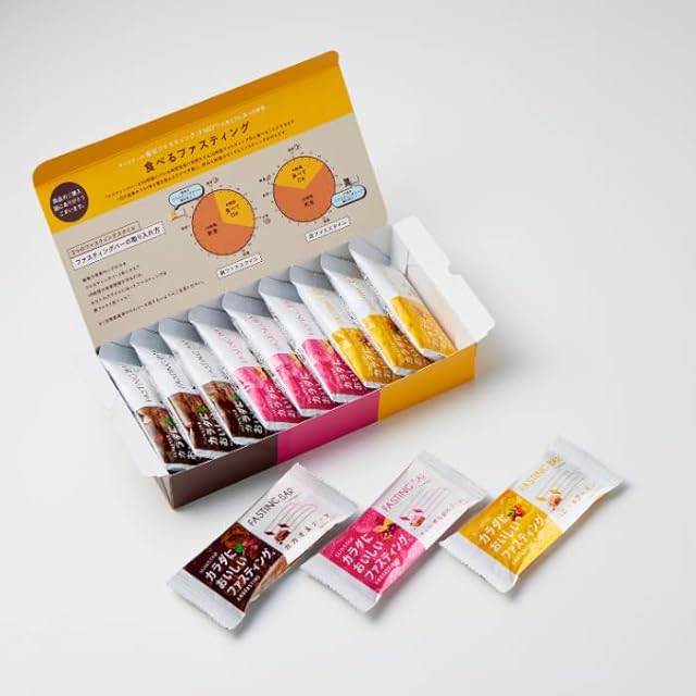 ・3食の食事のうち、いずれかの食事を本ファスティングバー1本に代えることで、手軽に16時間ファスティングを実施することができます。 ・食物繊維の豊富さと、ナッツの歯ごたえにより満足感があります。 ・ナッツを主体にはちみつでほのかな甘さをつけ、素材そのもののおいしさを引き出しました。 ・小麦粉不使用でグルテンフリーです。 ・100%植物由来の脂質により、ファスティングサポートPFCを実現しました。