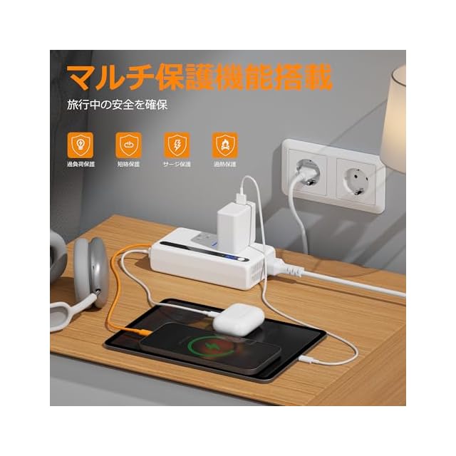 【複数保護機能搭載】220Vから110Vへ変換する降圧トランスには、過熱・過電流・過負荷・短絡に対応する保護機能を搭載。大切なデバイスを充電中もしっかり守ります。また、AC入力電圧を表示するLCDと、異常時に点灯する赤色インジケーターランプを備え、変圧器の状態がひと目でわかります。さらに、インテリジェント温度制御の冷却ファンを採用し、静音性と放熱性を両立。夜間の使用も安心です。なお、製品は海外での使用を目的としているため、本製品は日本国内ではご使用いただけませんので、あらかじめご了承ください。