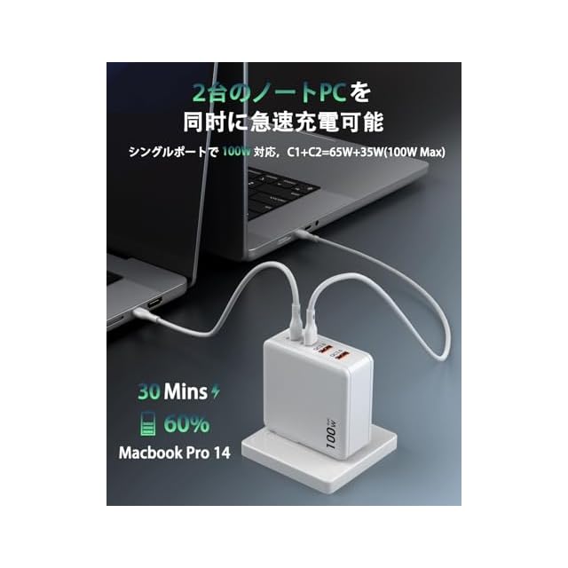 超高速100W出力で時間を節約:この充電器は最大100Wの出力に対応し、MacBook ProなどのノートPCから、急速充電が必要なスマートフォンまで幅広く対応します。大容量のデバイスも短時間でしっかりと充電できるので、忙しいビジネスマンや学生の方々にぴったりの充電器です。急いでいるときでも、すぐに充電完了です。