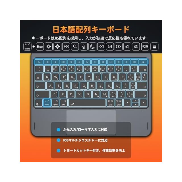 【高精度タッチパッド搭載】Bettdowマジックキーボードは高精度タッチパッドを採用し、IOSのフルエリアクリックやマルチタッチパッドをサポートし、誤動作や遅延などの問題を解決し、安心してiPadをご使用いただけます。さらに、ショートカットキー機能しており、音量調整や再生の一時停止などが簡単ににでき、快適で反応の良いタイピングを体験できる。文書の作成、メールの送信、あるいは単にウェブを閲覧する場合でも、効率的かつ快適に操作できます。
