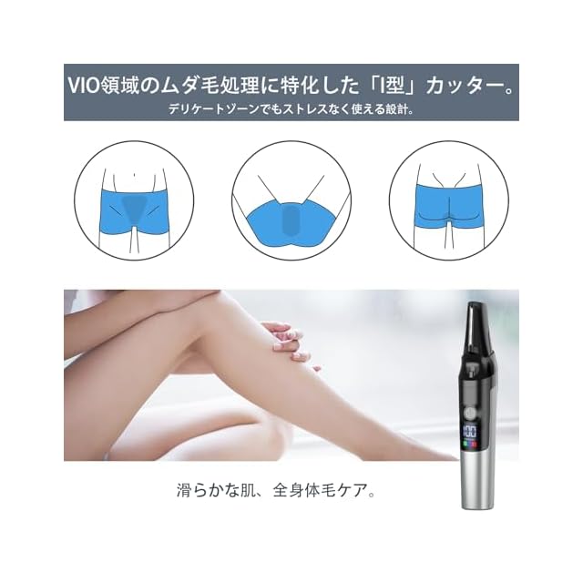 【VIO向け「I型」精密設計】この剃りやすさと使いやすさを追求したボディシェーバーは、細長い「I型」デザインがある。もちろん胸毛、すね毛、腕の毛だけでなく、デリケートな陰部(VIO)の処理にも対応しています。股間のくぼみやIラインの複雑な曲線にフィット。手元の視界を確保しながら、ストローク刃が皮膚を引き上げることで、ヒゲの根元から剃り上げ、剃り残しを最小限に抑えます。初めてのVIOケアでも安心する。